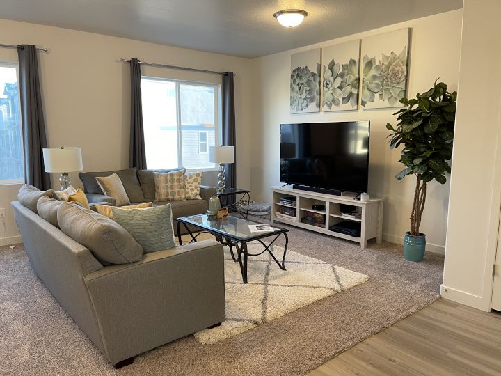 We live in a comfortable four-bedroom townhome located in a suburban neighborhood. In addition to a smaller park in our immediate community, there is also a beautiful 21-acre park down the road from us that we are very excited to spend lots of time at playing with our child. This park includes a large playground area, fields of open grass, and a duck pond that is a big hit with kids. More generally, our community is very well known to be extremely family oriented as it is actually known as "Family City USA," frequently hosting family friendly events such as family concerts, farmers markets, and family movie nights.
